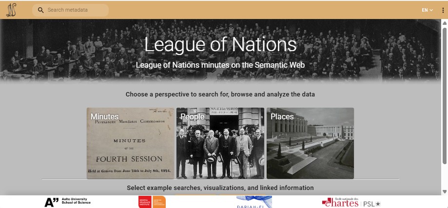 Sampo-UI landing page for the League of Nations data